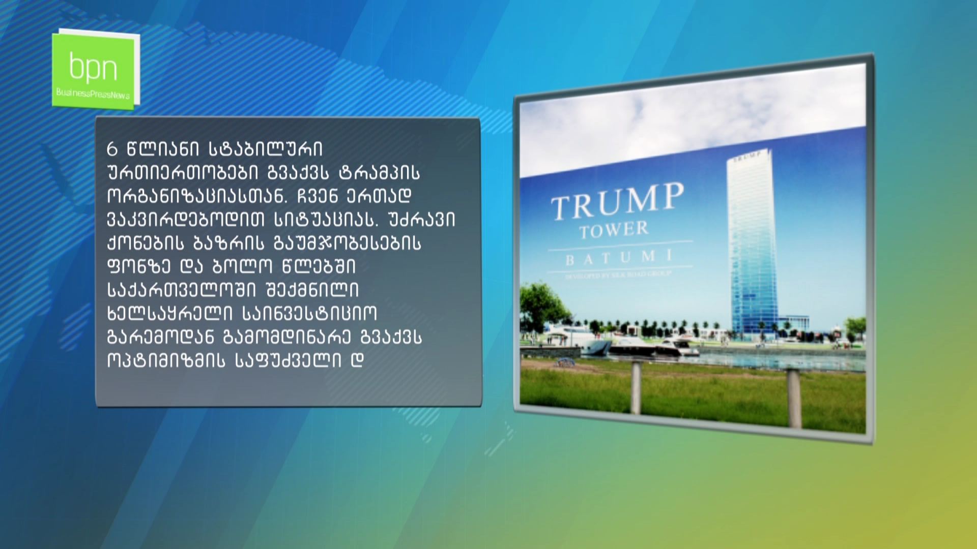 6-წლიანი კონსერვაციის შემდეგ “სილქ როუდ ჯგუფი” “ტრამპ თაუერის“ პროექტის გაგრძელების გეგმაზე საუბრობს. რა მიზეზით შეაჩერა კომპანიამ მასშტაბური პროექტის მშენებლობა და...
