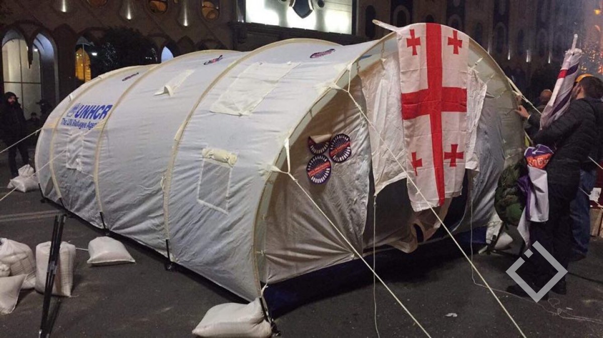 რუსთაველის გამზირზე, პარლამენტის წინ ოპოზიციის წარმომადგენლებმა კიდევ ერთი დიდი ზომის კარავი გაშალეს. აქციის მონაწილეების განცხადებით, ეს კარავი შტაბის ფუნქციას შეასრულებს, სადაც შეხვედრებიც...