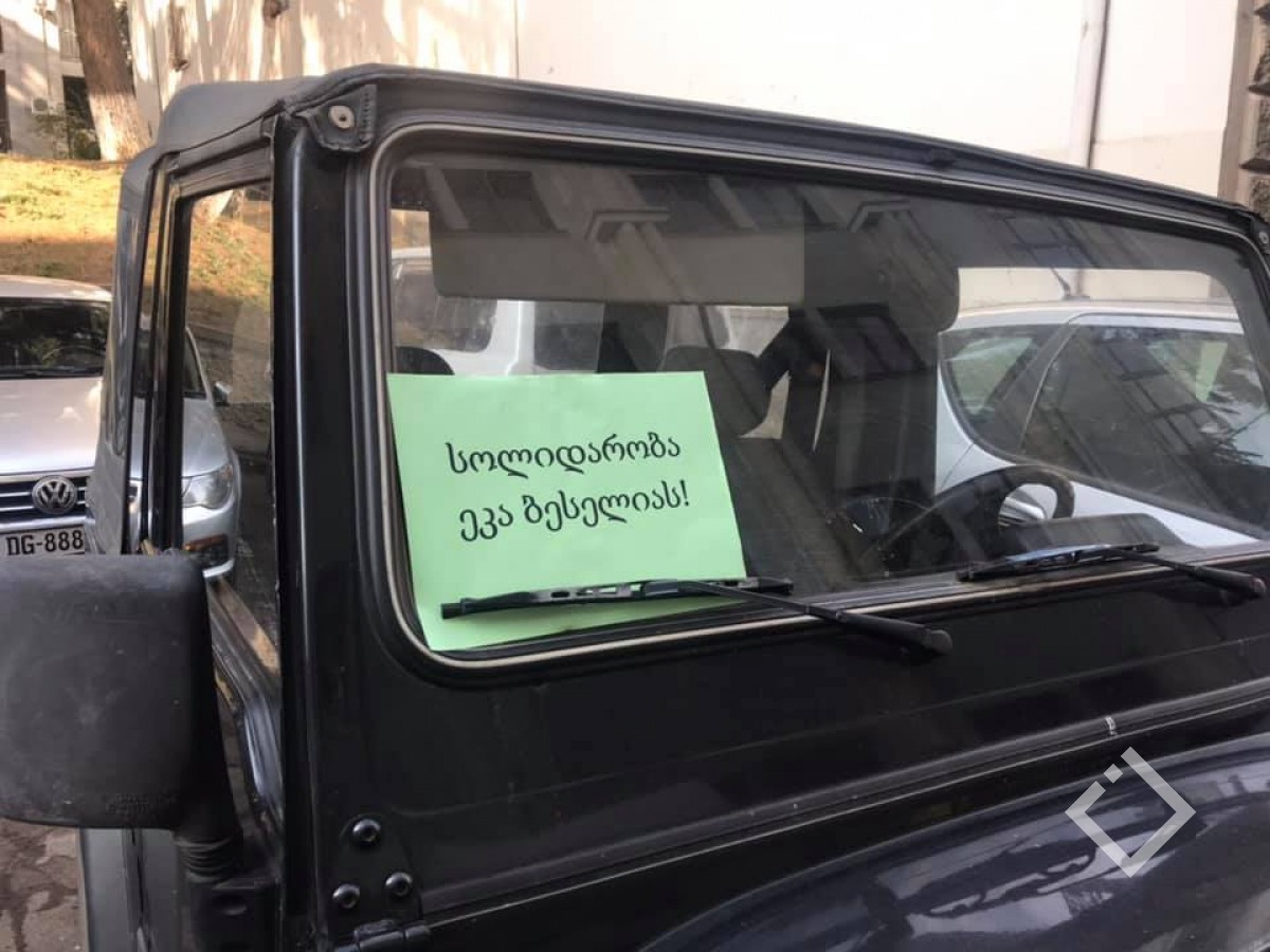 ''სოლიდარობა ეკა ბესელიას'' - აქციის ორგანიზატორებმა პარლამენტარების მანქანებზე ფერადი ფურცლები დატოვეს