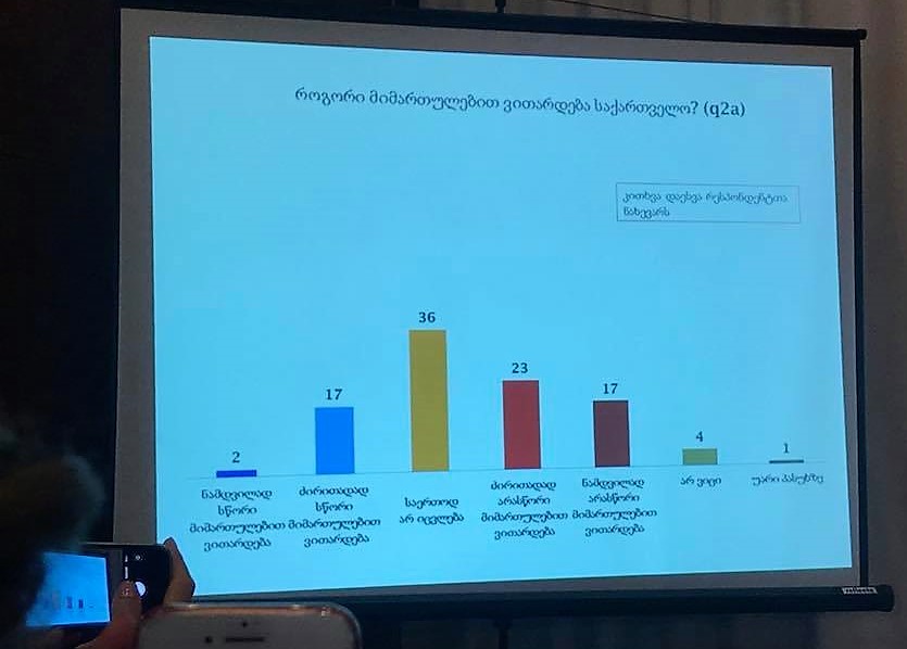 საქართველო განვითარების კუთხით საერთოდ არ იცვლება, ასე ფიქრობს გამოკითხულთა უმრავლესობა, „ეროვნულ-დემოკრატიული ინსტიტუტის“ (NDI-ის) კვლევის თანახმად. კითხვაზე - ძირითადად როგორი მიმართულებით ვითარდება...