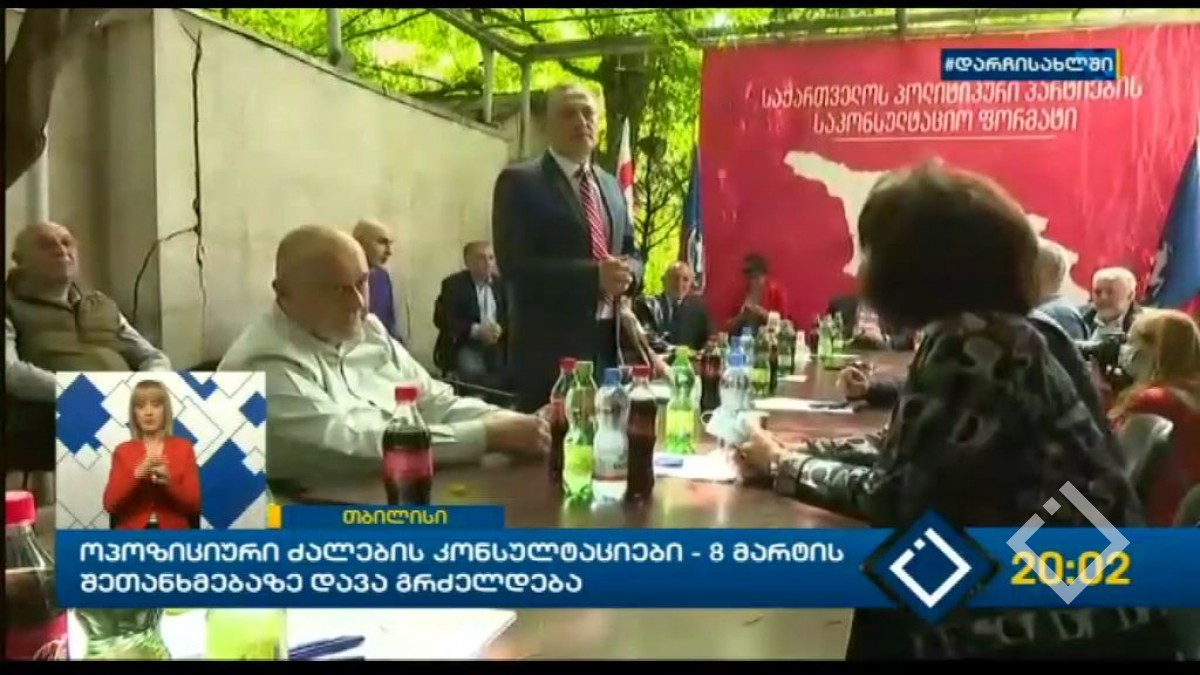 უკვე ერთი საათია ოპოზიციის წარმომადგენლები კონსულტაციას მართავენ. შედგება თუ არა საარჩევნო კოალიცია და როგორ შეჯერდებიან ოპოზიციის წარმომადგენლები ოლქებში მანდატების გადანაწილებაზე?...
