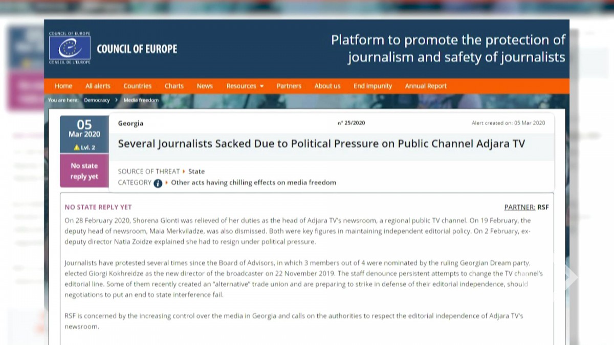 ჟურნალისტები საუბრობენ პოლიტიკურ ზეწოლაზე. ამჯერად საზოგადოებრივი მაუწყებლის აჭარის ტელევიზიასა და რადიოში მიმდინარე მოვლენებს ევროპის საბჭო ეხმაურება სპეციალური განცხადებით. მასში საუბარია...
