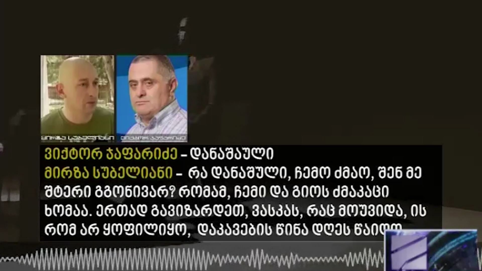ისევ ახალი აუდიოჩანაწერები. ტელეკომპანია „რუსთავი 2“ ინფორმაციით, სავარაუდოდ პროკურატურის ყოფილი მაღალჩინოსანი მირზა სუბელიანი, დეპუტატ ვიქტორ ჯაფარიძეს და პროკურატურის ყოფილ მაღალჩინოსნის...