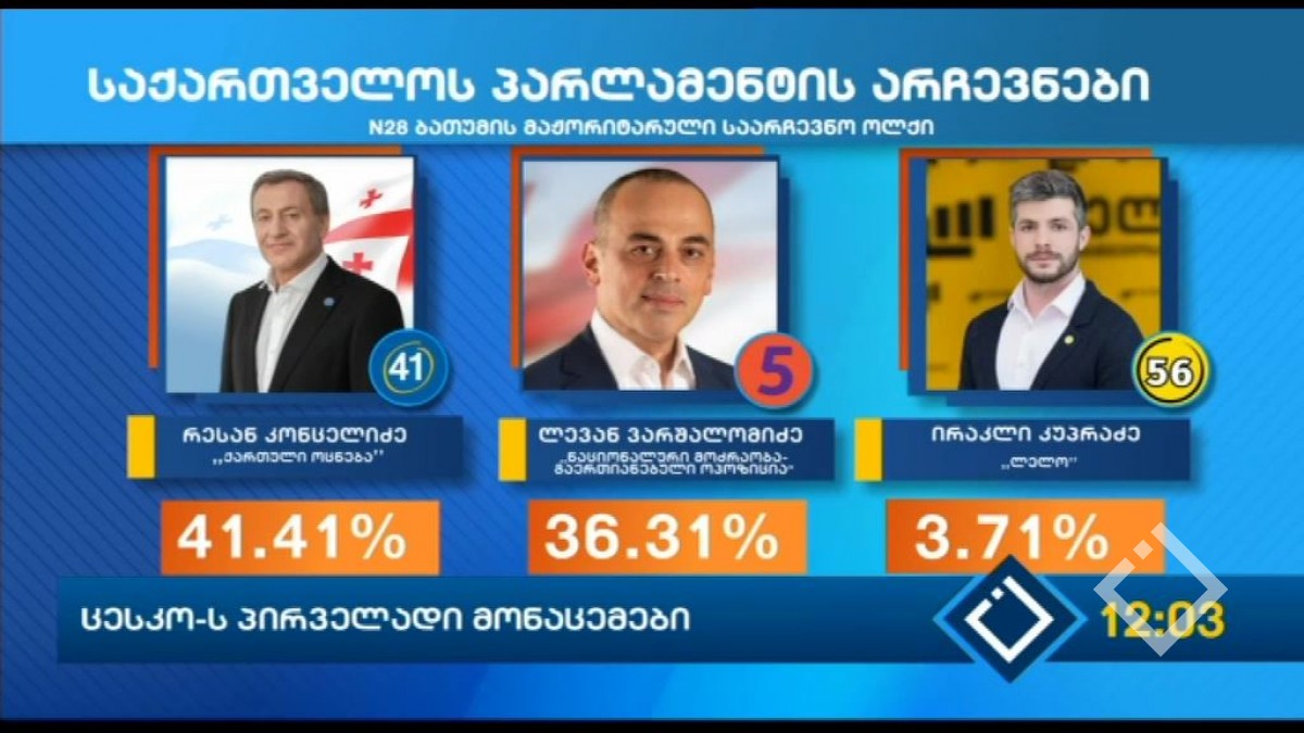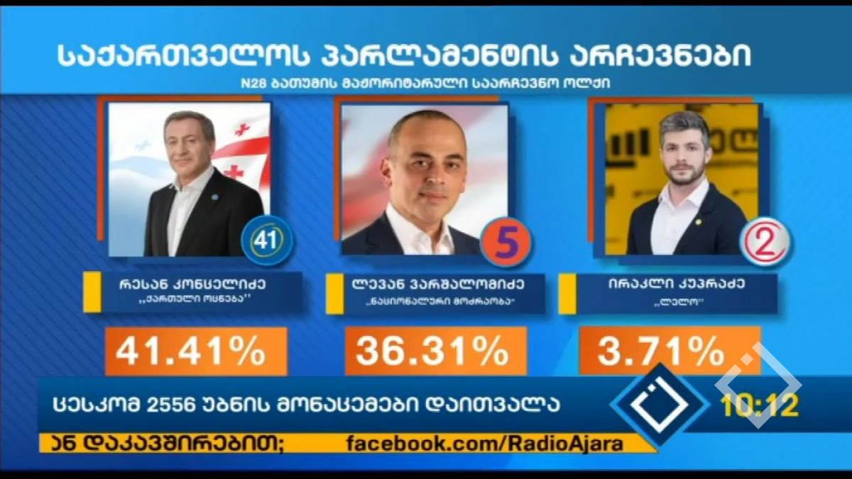 ცესკომ უკვე დათვალა პროპორციული ნაწილის ხმების 98%-ზე მეტი, გარდა ამისა მიმდინარეობს მაჟორიტარული ნაწილის დათვლაც, თუმცა აქ ჯერჯერობით კიდევ დარჩენილია ბევრი...