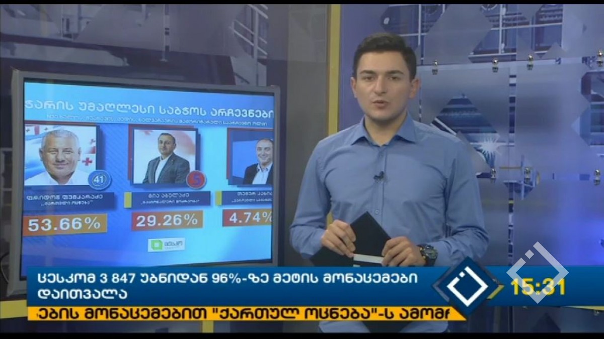 ცესკო-ს წინასწარი მონაცემებით, ამ დროისთვის „ქართულ ოცნებას“ ხმების 49.32%, „ნაციონალურ მოძრაობას“ 25.94%, ხოლო „ევროპულ საქართველოს“ 3.77% აქვს . 3 ათას...