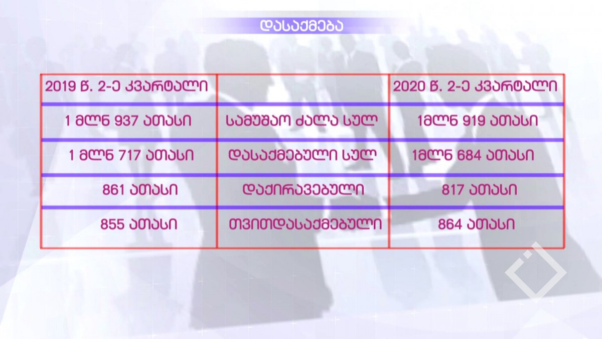 საქსტატის ბოლო მონაცემებით მიმდინარე წლის მე-2 კვარტალში შარშანდელ ანალოგიურ პერიოდთან შედარებით სამუშაო ძალა 18 ათასით შემცირდა და მილიონ 919 ათასი...