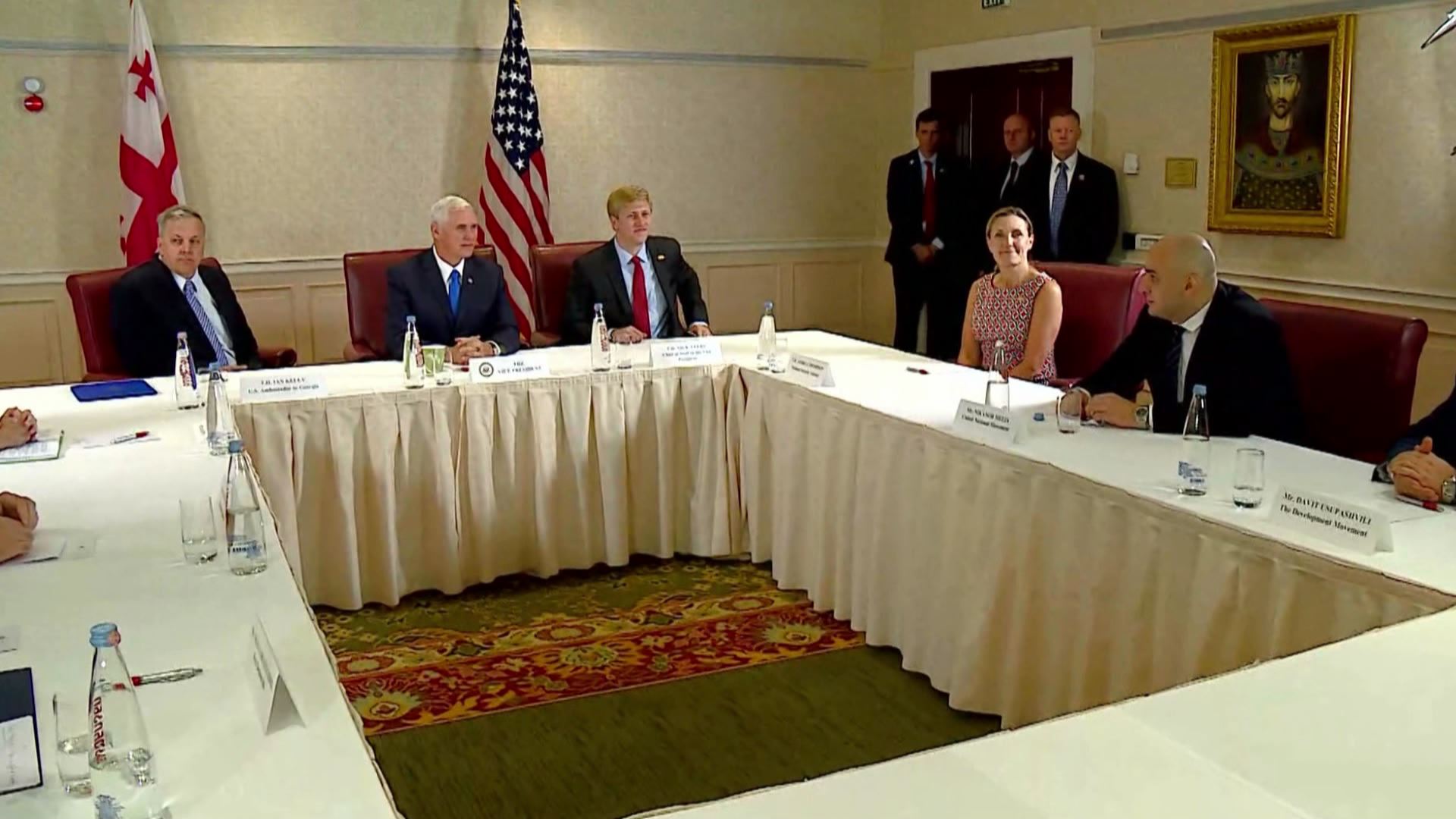 დახურულ კარს მიღმა გაიმართა ამერიკის შეერთებული შტატების ვიცე-პრეზიდენტისა და ოპოზიციური პარტიების ლიდერებს შეხვედრა. რომელსაც დავით ბაქრაძე, ნიკა მელია, დავით უსუფაშვილი...