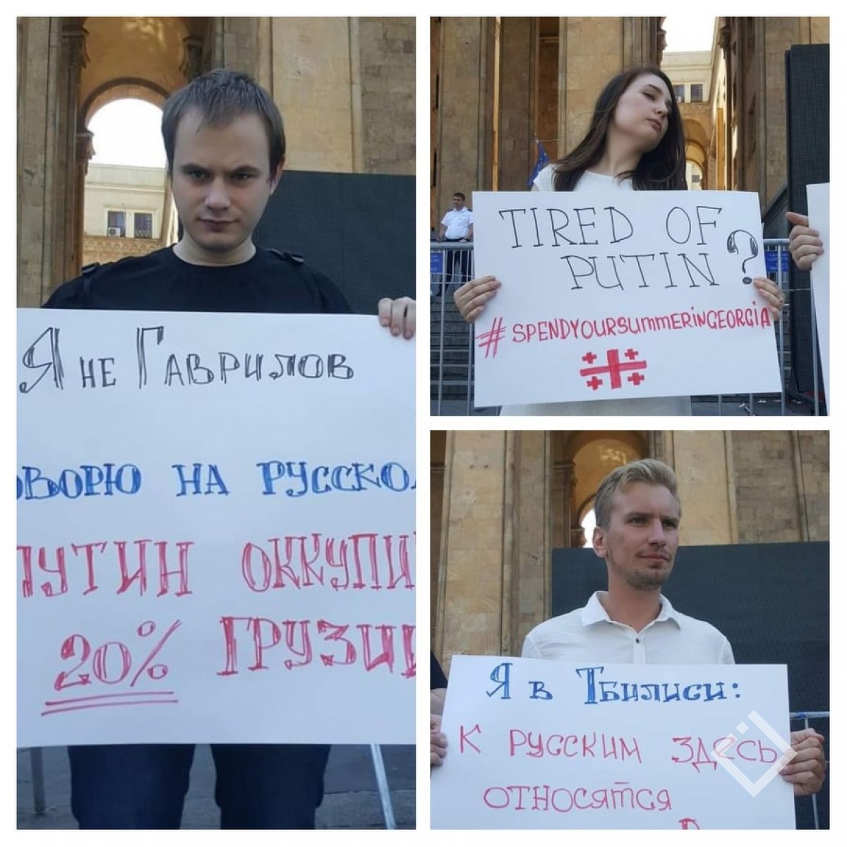 საქართველოში მცხოვრებმა რუსეთისა და უკრაინის მოქალაქეებმა პარლამენტთან სოლიდარობის აქცია გამართეს. "დაიღალე პუტინით? გაატარე ზაფხული საქართველოში", რუსებს აქ უფრო კარგად ექცევიან...