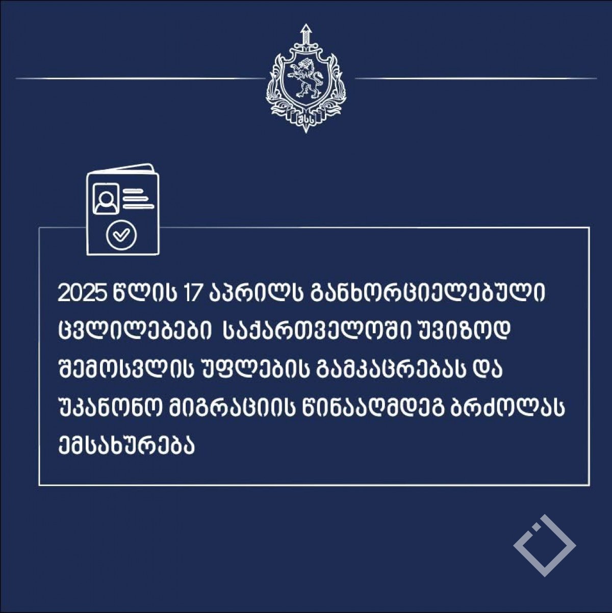 შინაგან საქმეთა სამინისტრო განცხადებას ავრცელებს. "გვსურს, საზოგადოებას მივაწოდოთ დეტალური ინფორმაცია 2025 წლის 17 აპრილს მიღებული ცვლილებების შესახებ, რომელშიც განსაზღვრულია იმ...