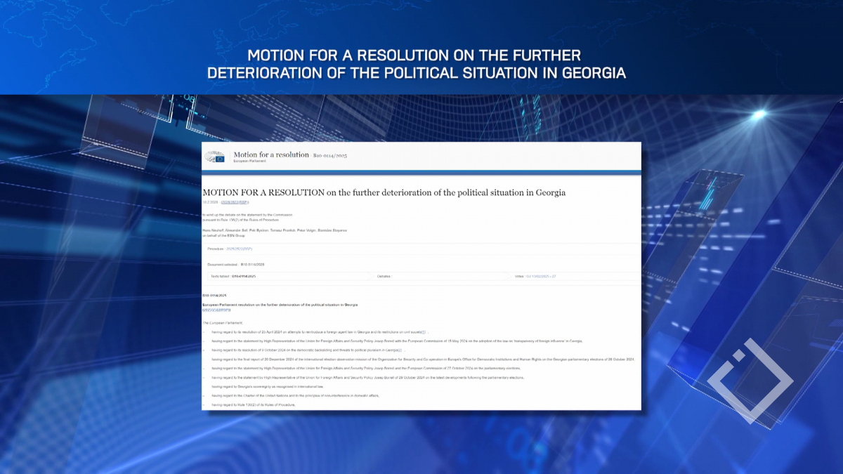 ევროპარლამენტში „სუვერენულ ერთა ევროპის“ (ESN) ჯგუფის სახელით კი ევროდეპუტატებმა საქართველოს ხელისუფლების მხარდამჭერი რეზოლუცია წარადგინეს. ისინი გმობენ ევროკავშირის ჩარევას შიდა საქმეებში. მიაჩნიათ,...