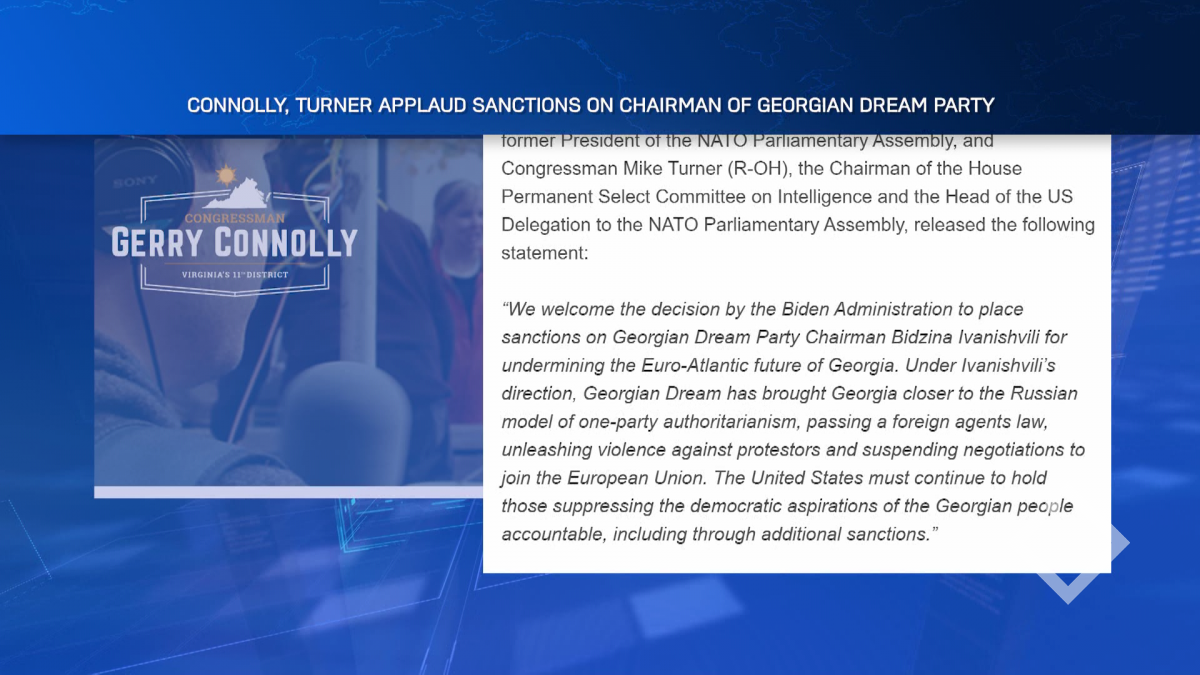 დემოკრატი კონგრესმენი გერი კონოლი და რესპუბლიკელი კონგრესმენი მაიკ ტერნერი აცხადებენ, რომ „ქართული ოცნების“ საპატიო თავმჯდომარის, ბიძინა ივანიშვილის წინააღმდეგ სანქციებს მიესალმებიან....