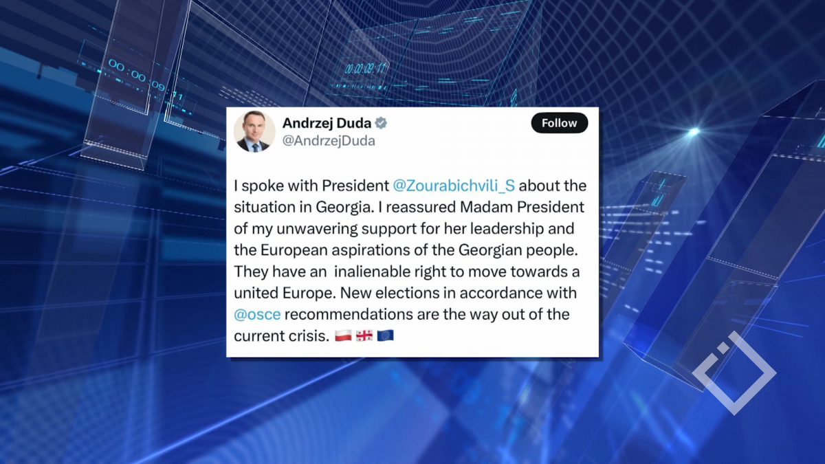 საქართველოში არსებულ ვითარებაზე პრეზიდენტ ზურაბიშვილს ესაუბრა პოლონეთის პრეზიდენტი. ამის შესახებ ანჯეი დუდა პლატფორმა X-ზე წერს. “კიდევ ერთხელ დავუდასტურე ქალბატონ პრეზიდენტს...