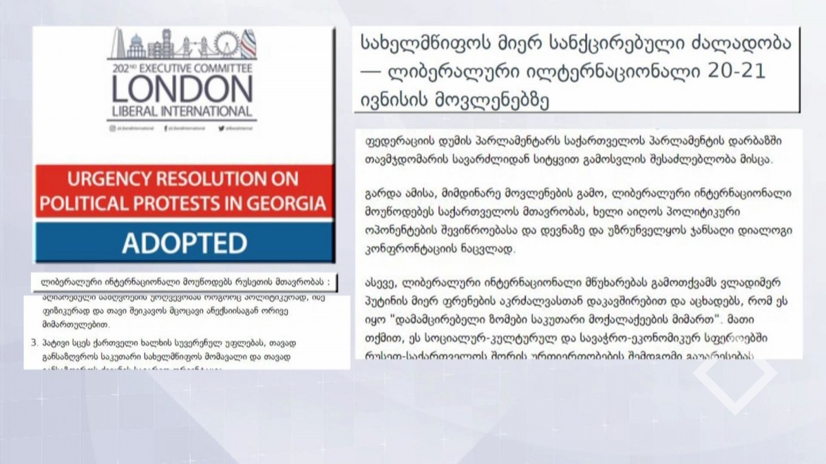 სახელმწიფოს მიერ სანქცირებულ ძალადობად შეაფასა, 20-21 ივნისს განვითარებული მოვლენები „ლიბერალურმა ინტერნაციონალმა“. ტექსტში აღნიშნულია, რომ საქართველოს მთავრობის ქმედებებმა "შეგნებულად შეუწყო ხელი"...