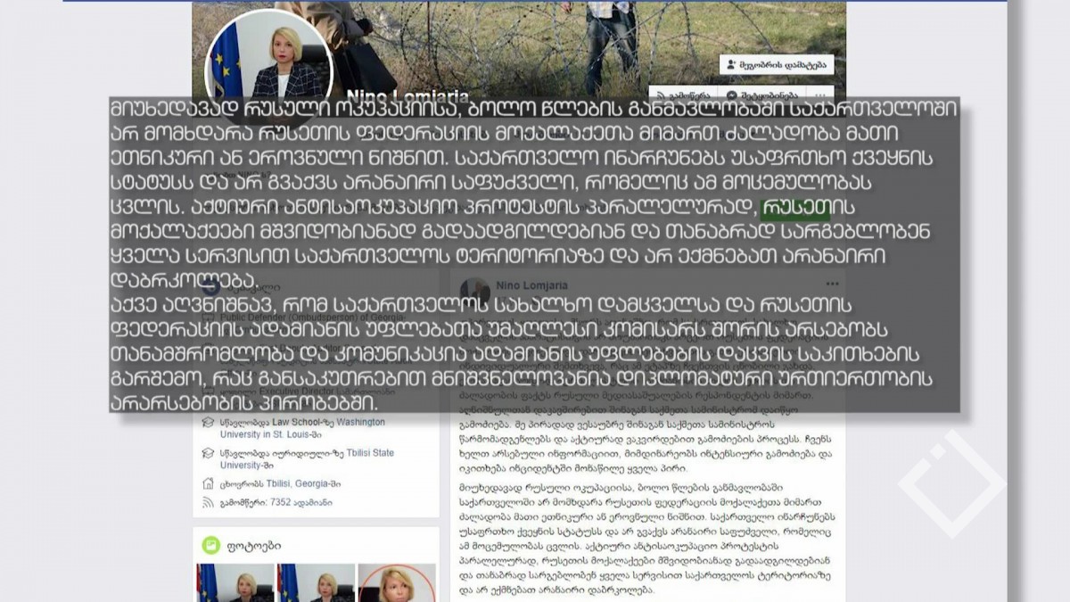 რუსეთის ომბუდსმენი ტატიანა მოსკალკოვა საქართველო სახალხო დამცველს, ნინო ლომჯარია სთხოვს, დაეხმაროს საქართველოში მყოფი რუსეთის მოქალაქეების უფლებების დაცვაში. მისი განცხადებით, „რუსული...
