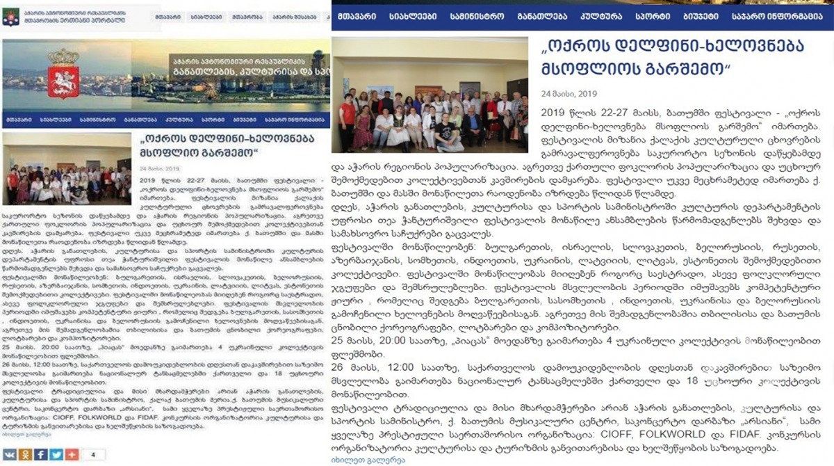 აჭარის მთავრობის ვებ-პორტალზე, ფესტივალის "ოქროს დელფინის" ორგანიზატორების ჩამონათვალიდან, ბათუმის მერია გაქრა. დამოუკიდებლობის დღეს, ბათუმის ქუჩებში გამოჩენილი რუსული დროშებისა და ამ ამბის...