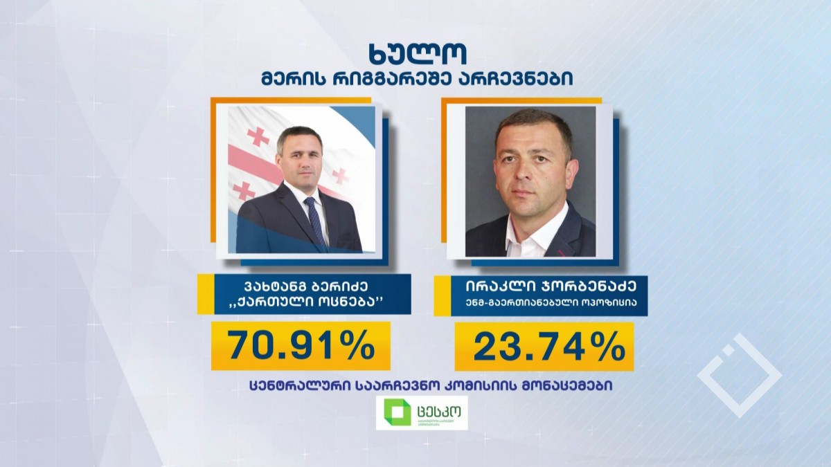 „ცესკოს“ პირველადი შედეგებით, მერის რიგგარეშე არჩევნებში, 5-ვე მუნიციპალიტეტში - ხულოში, ზუგდიდში, მარნეულში, ზესტაფონსა და ჭიათურაში გამარჯვება პირველივე ტურში, „ქართული ოცნების“...