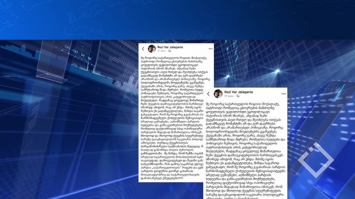 „გახარია საქართველოსთვის“ უმაღლესი საბჭოს სიაში რიგით მეოცე ნომერმა პარტია დატოვა, რევაზ ჯალაღანიამ აღნიშნულთან დაკავშრებით სოციალურ ქსელში დაწერა და განაცხადა, გმობს...