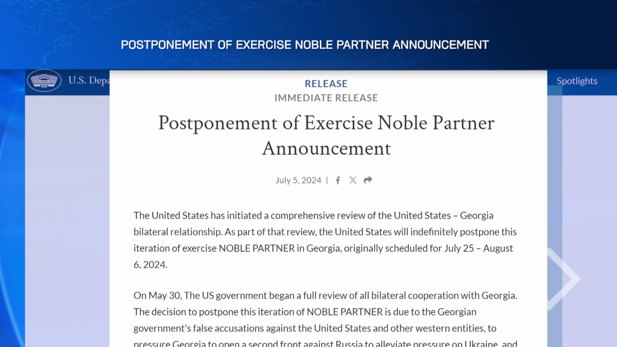 აშშ-მა საქართველოში სწავლება "ღირსეული პარტნიორი" განუსაზღვრელი ვადით გადადო - ინფორმაციას აშშ-ის თავდაცვის დეპარტამენტი ავრცელებს. განცხადებით ირკვევა, რომ სწავლება თავდაპირველად 2024...