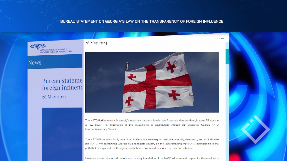 NATO-ს საპარლამენტო ასამბლეის ბიურო აცხადებს, რომ ეს კანონი უკან გადადგმული ნაბიჯია საქართველოს დემოკრატიისთვის და ეწინააღმდეგება მის მისწრაფებებს NATO-სა და ევროკავშირში....