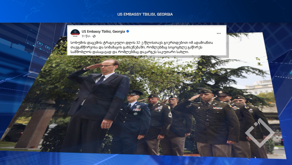 საქართველოში აშშ-ის საელჩო, სოხუმის დაცემის დღეს სოციალურ ქსელში ეხმაურება. "სოხუმის დაცემის ტრაგიკული დღის 32-ე წლისთავს გიერთდებით იმ ადამიანთა თავგანწირვისა და...