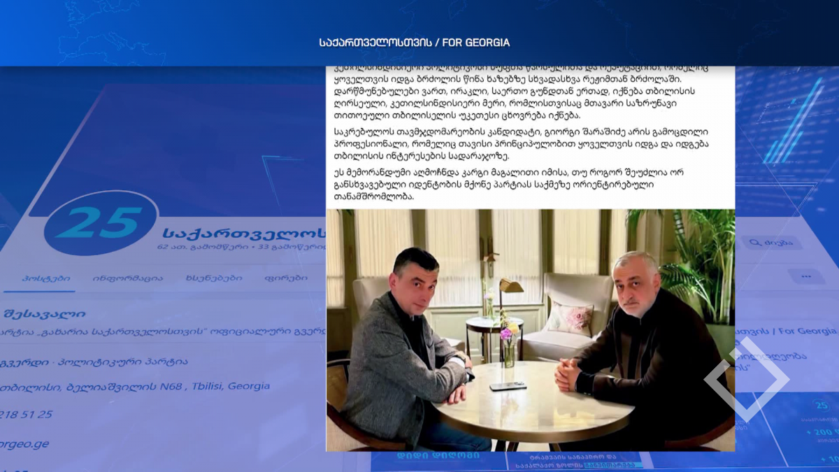 გიორგი გახარიამ და მამუკა ხაზარაძემ შეხვედრა გამართეს, რომლის შემდეგ გავრცელებულ ერთობლივ განცხადებაში ნათქვამია, რომ პარტიებს შორის გაფორმებული მემორანდუმი შედგა. „ეს...