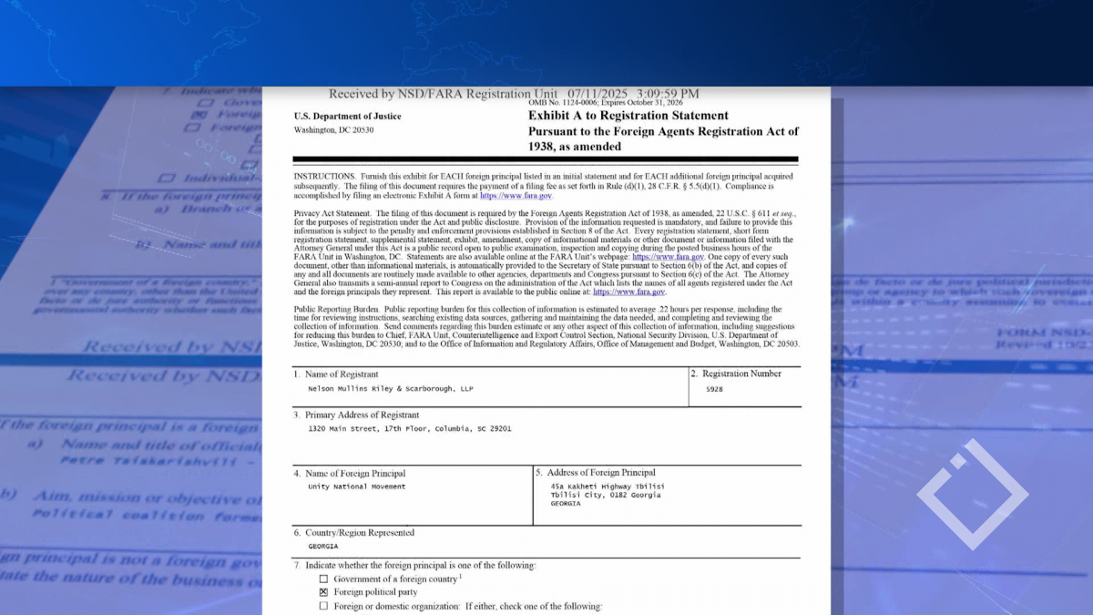 აშშ-ის იუსტიციის დეპარტამენტში რეგისტრირებული ახალი დოკუმენტის მიხედვით, „ერთიანმა ნაციონალურმა მოძრაობამ“ აშშ-ში ლობისტურ კომპანიასთან კონტრაქტს მოაწერა ხელი. დოკუმენტის მიხედვით, დაქირავებული კომპანიის...