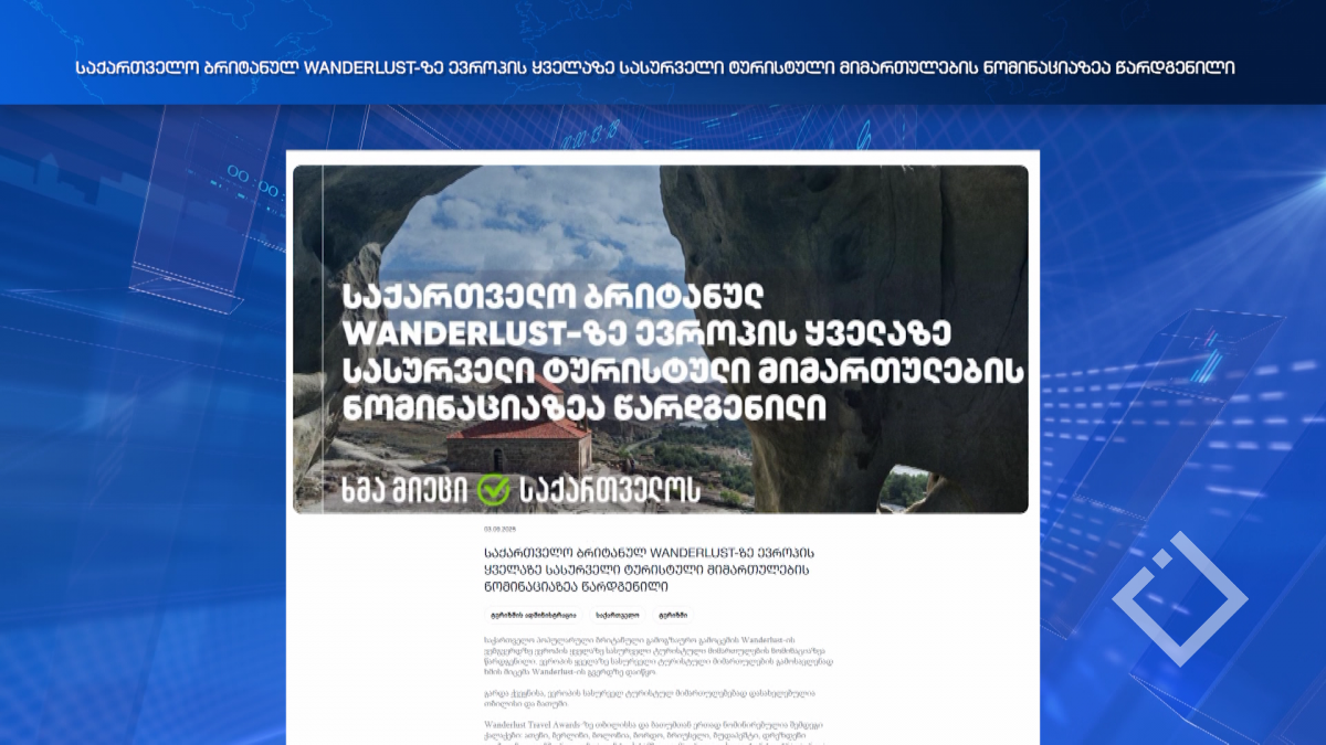 საქართველო პოპულარული ბრიტანული სამოგზაურო გამოცემის, ვანდერლასტის ვებგვერდზე ევროპის ყველაზე სასურველი ტურისტული მიმართულების ნომინაციაზეა წარდგენილი. ტურიზმის ეროვნული ადმინისტრაციის ინფორმაციით, ევროპის ყველაზე...