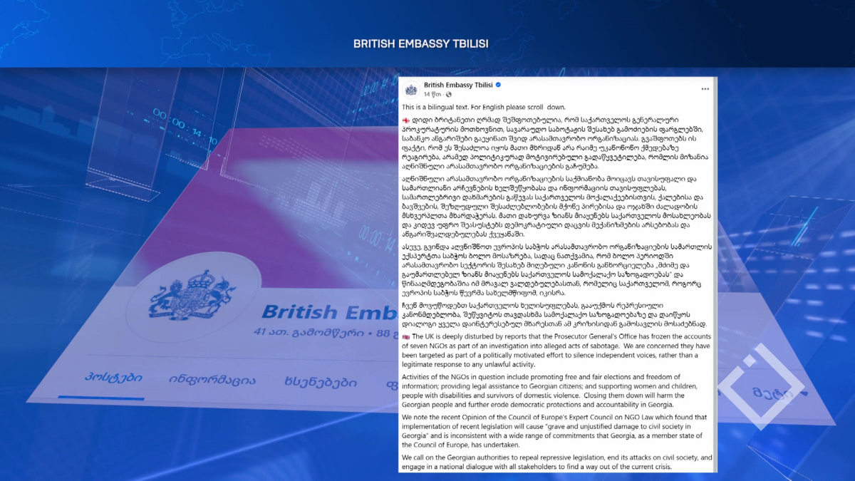 დიდი ბრიტანეთი მოუწოდებს საქართველოს ხელისუფლებას, „გააუქმოს რეპრესიული კანონმდებლობა“, შეწყვიტოს „თავდასხმა სამოქალაქო საზოგადოებაზე“ და დაიწყოს დიალოგი ყველა დაინტერესებულ მხარესთან „კრიზისიდან გამოსავლის...