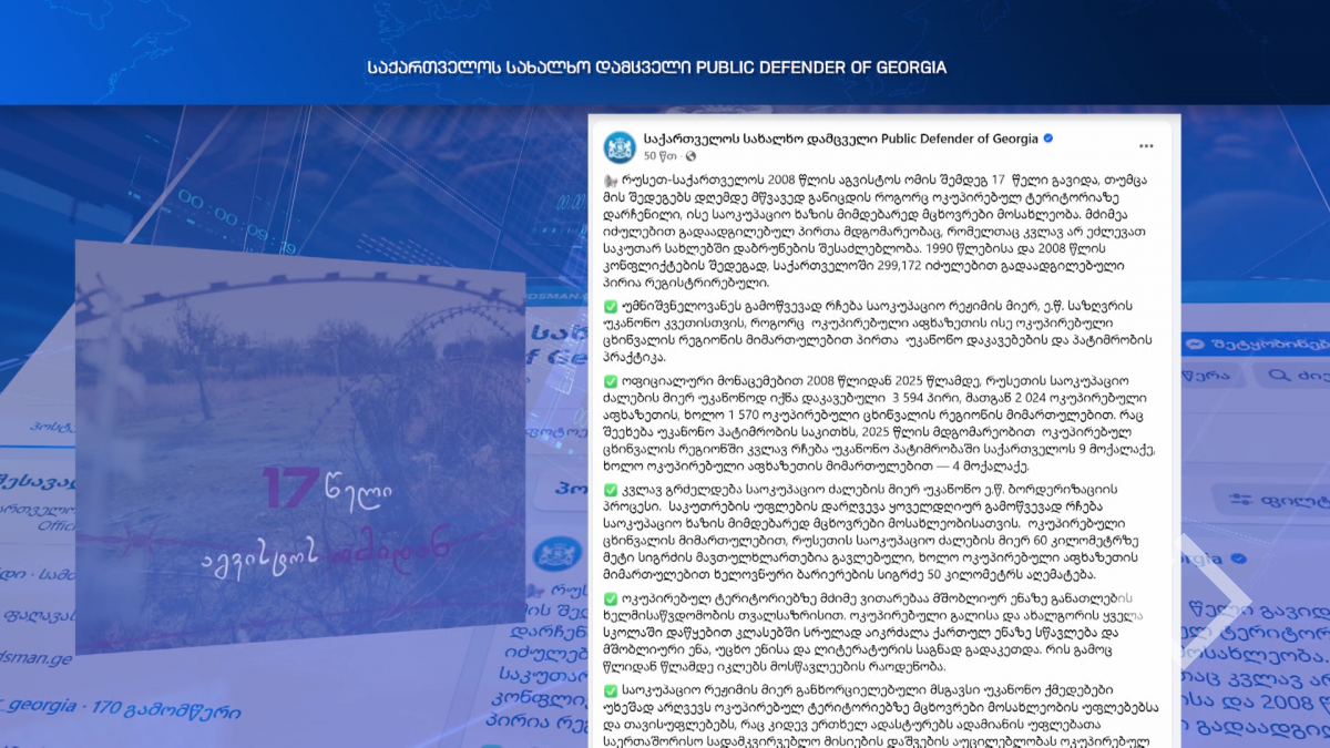 „რუსეთ-საქართველოს 2008 წლის აგვისტოს ომის შედეგებს დღემდე მწვავედ განიცდის როგორც ოკუპირებულ ტერიტორიაზე დარჩენილი, ისე საოკუპაციო ხაზის მიმდებარედ მცხოვრები მოსახლეობა.“ -...