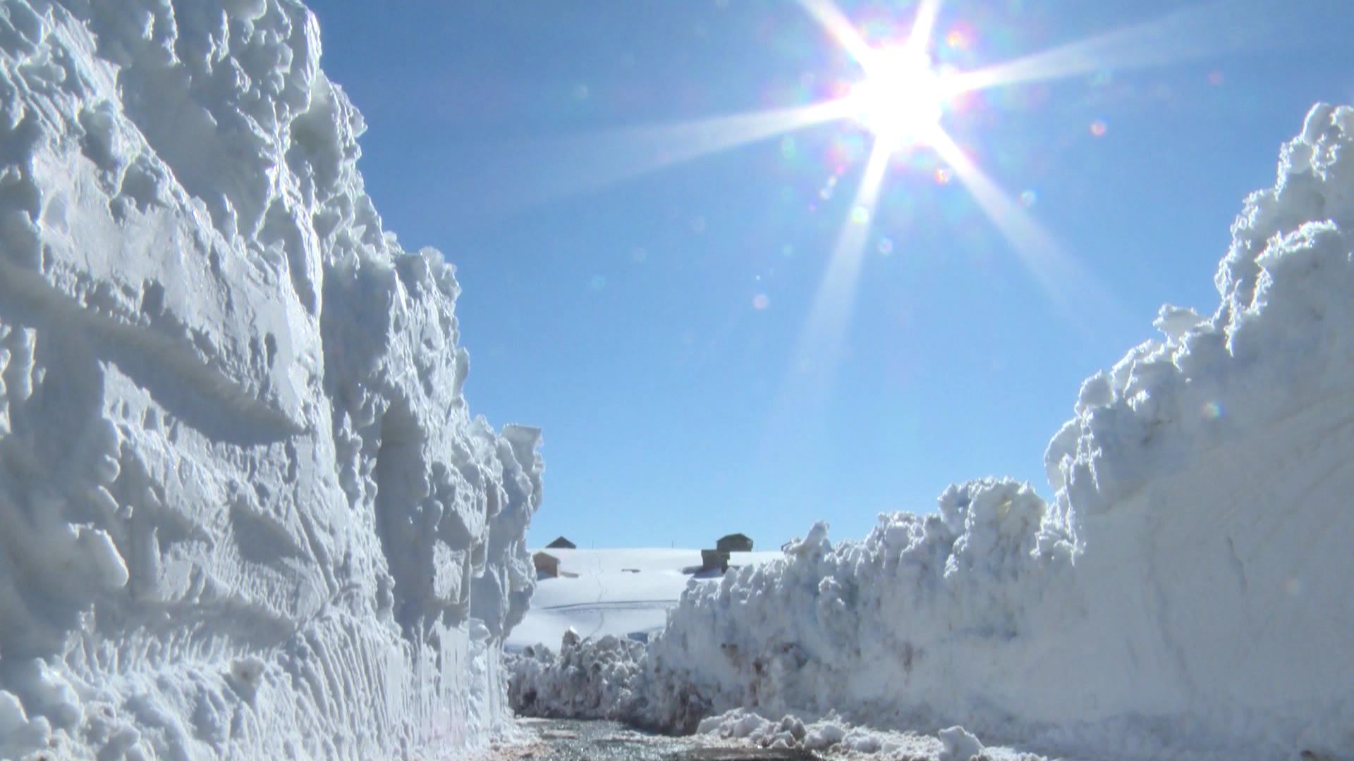 4 მეტრიანი თოვლის კედლები გოდერძის უღელტეხილზე. გზის სავალ ნაწილს თოვლისგან ათავისუფლებენ, გზის გასწვირ კი თოვლის საფარი იმდენად მაღალია, რომ გადაადგილებისას...