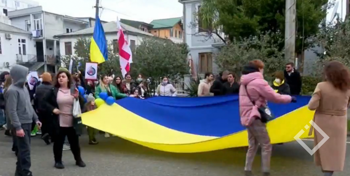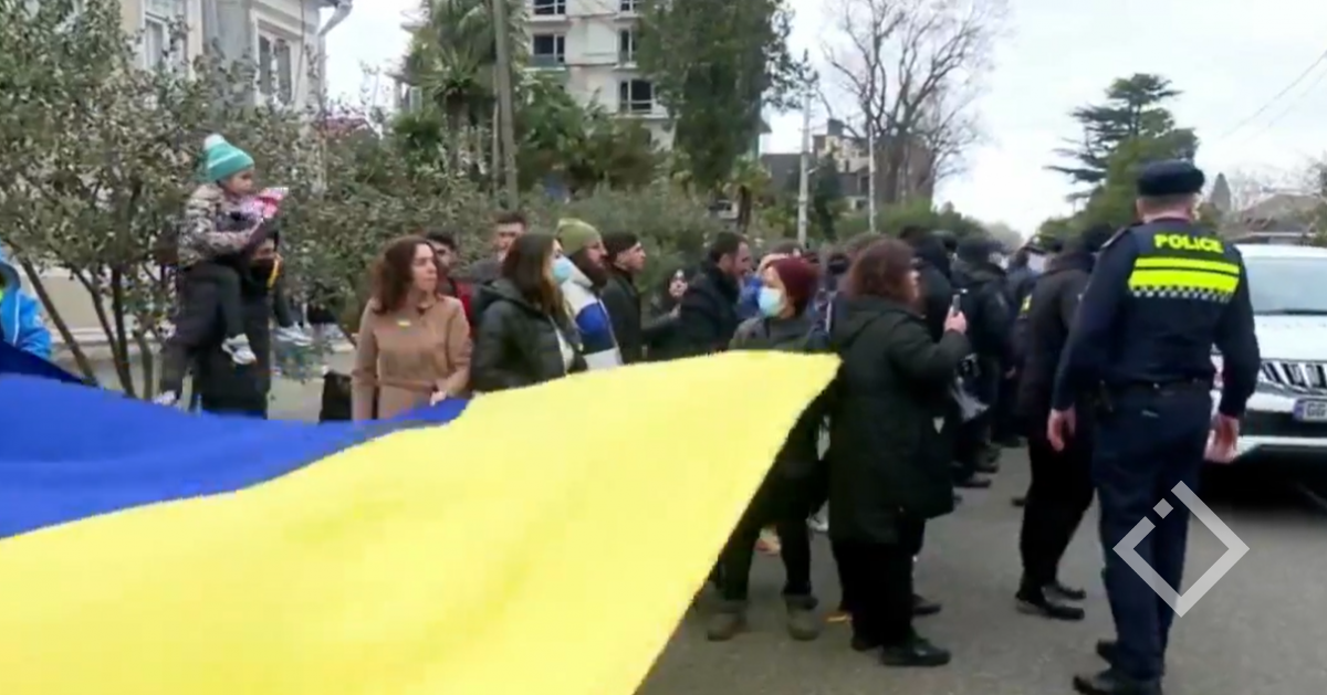 ქობულეთში "ალტ ინფოს" ოფისს სხვადასხვა შინაარსის ტრანსფარატები და უკრაინის დროშა მიაკრეს