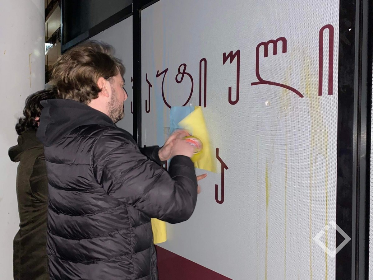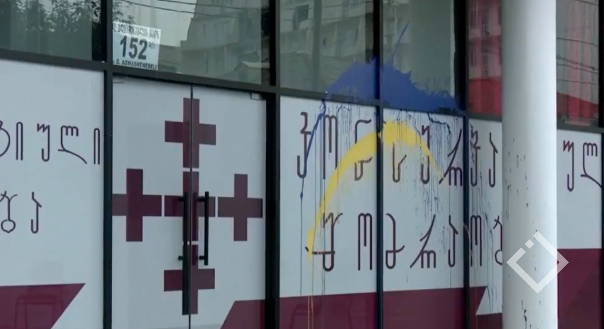 მათ ოფისის შესასვლელ კარებსა და მინებზე უკრაინის...
