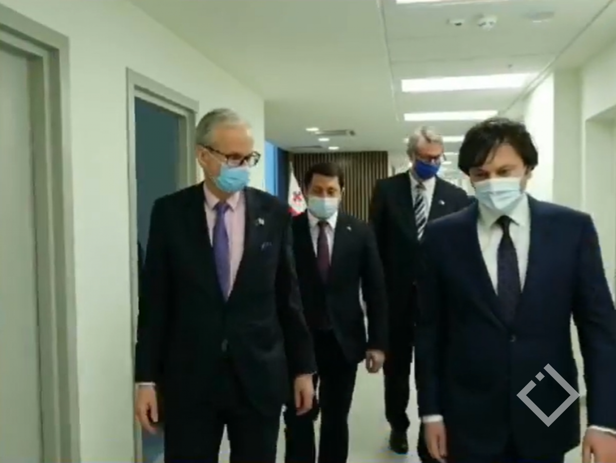 ევროპული საბჭოს პრეზიდენტის, წარმომადგენელი კრისტიან დანიელსონი "ქართული ოცნების" წევრებს ახლა კიდევ ერთხელ ხვდება. ევროკავშირის წარმომადგენლობის ოფისში ასევე იმყოფება საქართველოში აშშ-ის ელჩი...