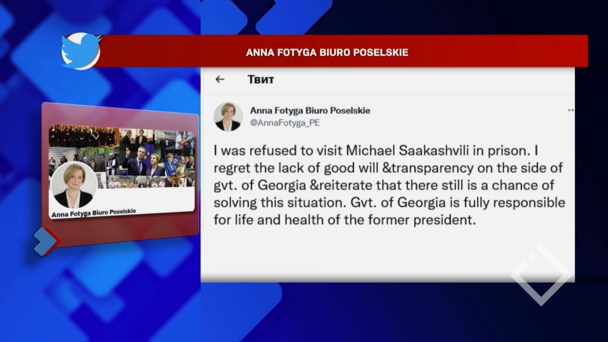 ევროპარლამენტარი ანა ფოტიგა აცხადებს, რომ საქართველოს ყოფილი პრეზიდენტის, მიხეილ სააკაშვილის ციხეში მონახულებაზე უარი მიიღო. აცხადებს რომ მიხეილ სააკაშვილის ჯანმრთელობის მდგომარეობაზე...