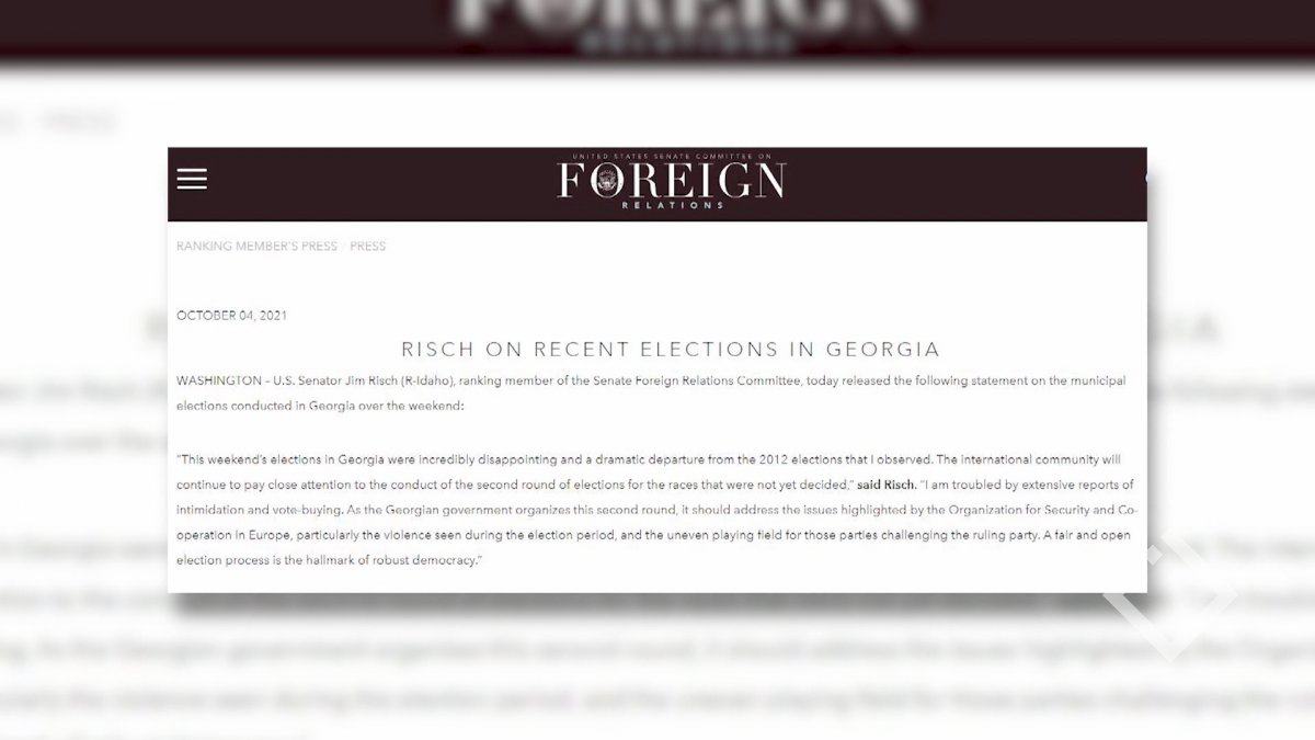 ამერიკელი სენატორი ჯიმ რიში ფიქრობს, რომ 2 ოქტომბრის არჩევნები 2012 წლის საპარალამენტო არჩევნებიდან უკან დახევაა. სენატის საგარეო ურთიერთობების კომიტეტის წევრი...