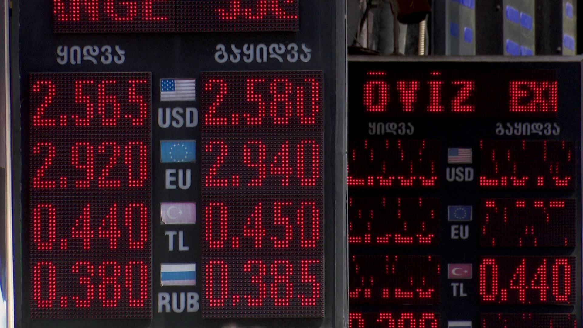 ლარი გაუფასურებას განაგრძობს. სავალუტო ჯიხურებში ამერიკული დოლარის კურსი დილიდან 2.6 მეათედი ლარის ნიშნულის ფარგლებშია. ამერიკული ვალუტის შეძენა 2.62-2.64 ლარად არის...