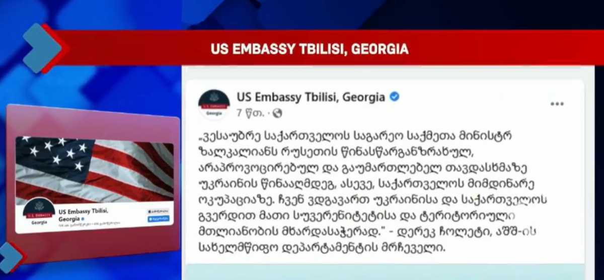 აშშ-ის სახელმწიფო დეპარტამენტის განცხადება გავრცელდა, რომელშიც ვკითხულობთ, რომ დეპარტამენტის მრჩეველი ესაუბრა საქართველოს საგარეო საქმეთა მინისტრს.