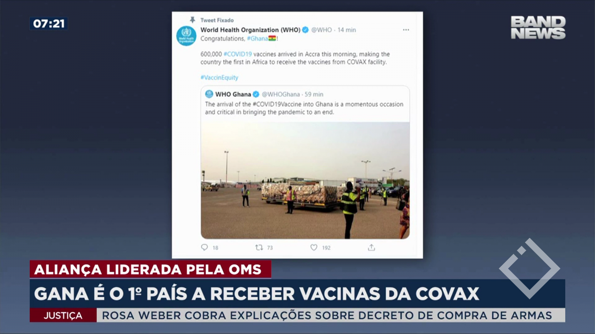 განა მსოფლიოში პირველი ქვეყნა, რომელმაც კორონავირუსის საწინააღმდეგო ვაქცინის პარტია საერთაშორისო მექანიზმის კოვაქსის ფარგლებში მიიღო. ამის შესახებ ნათქვამია ჯანდაცვის მსოფლიო ორგანიზაციისა...