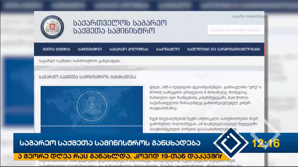 საგარეო უწყება ჰაკერული თავდასხმის საქმეზე „გრუ“-ს ოფიცრების დაკავებაზე განცხადებას ავრცელებს. საგარეო საქმეთა სამინისტრო მიესალმება ამერიკელი პარტნიორების მიერ გამოჩენილ ძალისხმევას, „ამ...
