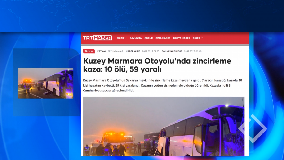 11 დაღუპული 60-მდე დაშავებული-თურქეთში ჯაჭვური ავტოსაგზაო მოხდა. დაღუპულებს შორის არიან ბავშვები. ტელეკომპანია TRT Haber-ი ინფორმაციით, შემთხვევა საქარიის პროვინციაში, „ჩრდილოეთ მარმარილოს“...