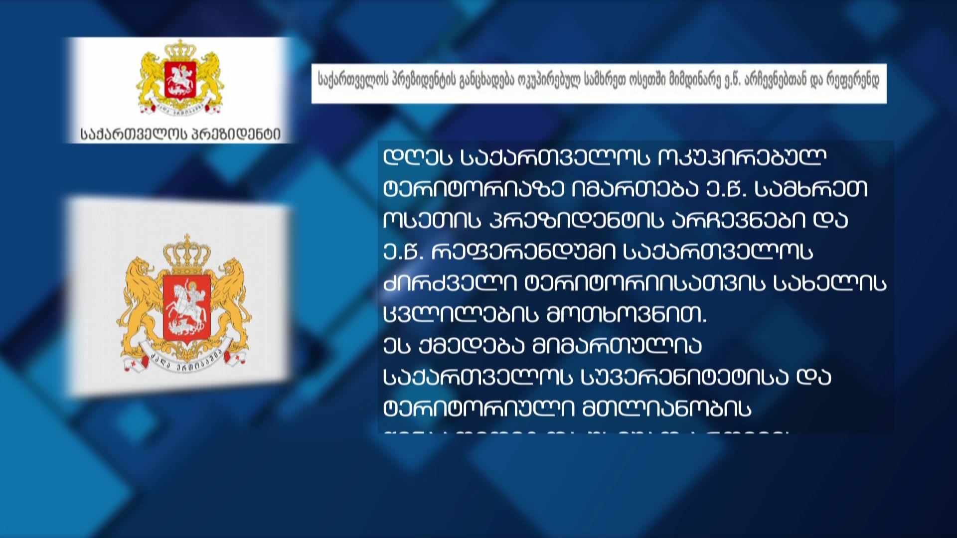 ეგრეთწოდებულ სამხრეთ ოსეთში მიმდინარე საპრეზიდენტო არჩევნებს ეხმაურება საქართველოს პრეზიდენტი. ე.წ. სამხრეთ ოსეთის ''პრეზიდენტის'' არჩევნები და ე.წ. რეფერენდუმი მიმართულია საქართველოს სუვერენიტეტისა და...