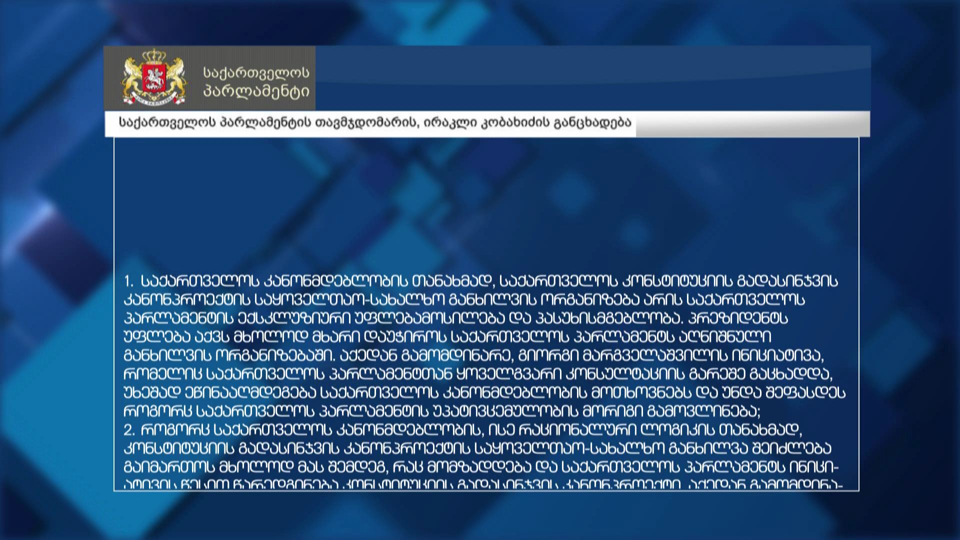 პარლამენტის თავმჯდომარის ამ მიმართვას არაერთგვაროვანი შეფასებები მოჰყვა, კომენატრები გაკეთდა პარლამენტში, პრეზიდენტის ადმინიტრაციასა და მესამე სექტორში.