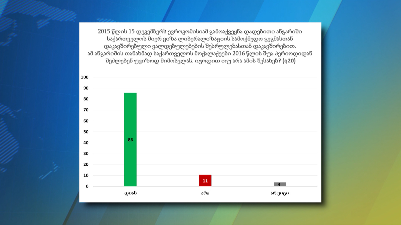 საქართველოს უსაფრთხოებას ყველაზე მეტად ნატო უზრუნველყოფს. ხოლო შეკითხვაზე თუ რომელი ქვეყანა წარმოადგენს საქართველოსთვის ყველაზე დიდ საფრთხეს, გამოკითხულთა 47% რუსეთს მიიჩნევს-ეროვნულ...