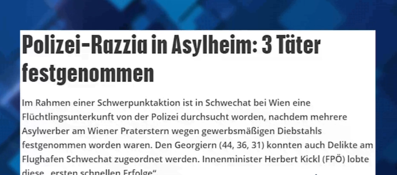 ავსტრიის ქალაქ შვეხატში, ლტოლვილთა ბანაკში ჩატარებული რეიდის შედეგად პოლიციამ მაღაზიების გაქურდისთვის საქართველოს სამი მოქალაქე დააკავა. პროკურატურის ინფორმაციით, საქართველოს მოქალაქეების საცხოვრებელში...