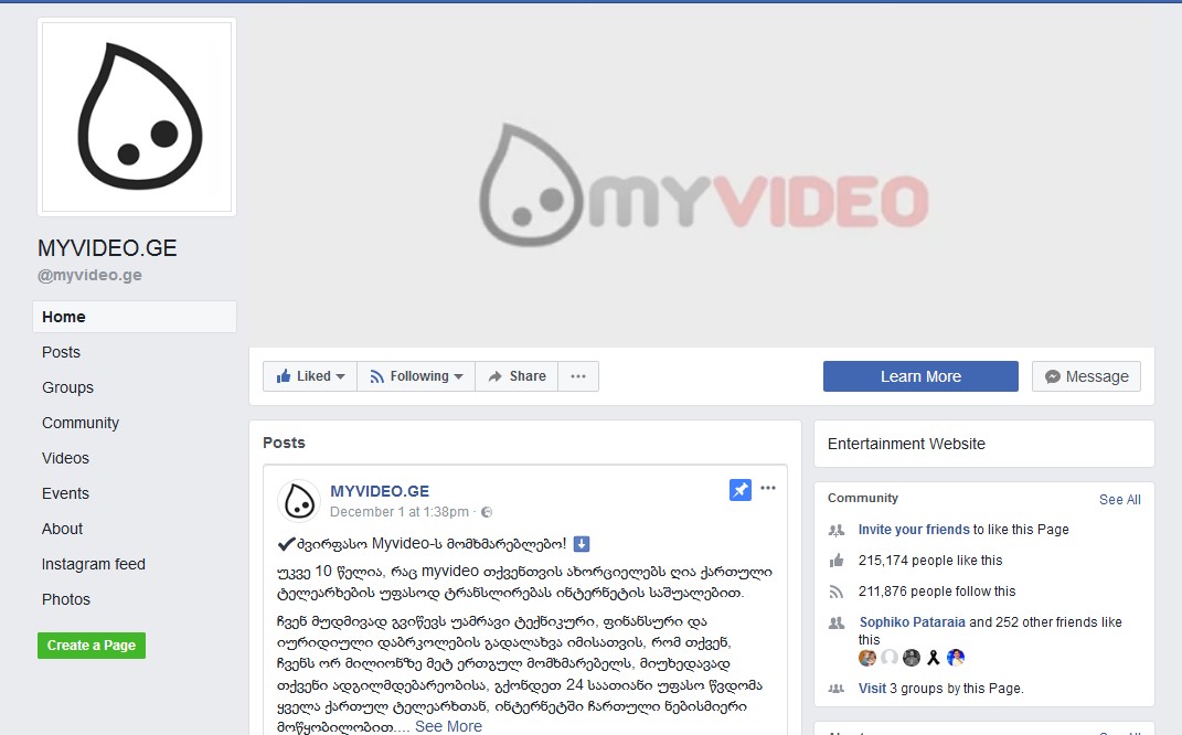 საქართველოში ყველაზე მსხვილი ინტერნეტ პორტალი myvideo.ge...