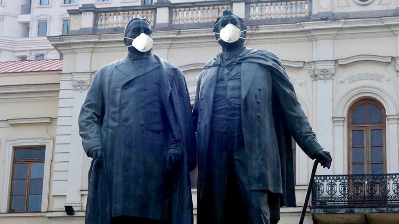 ''ილია, აკაკი, ვაჟა, გალაკტიონი, გოგლა და სხვები ნიღაბაფარებულნი დგანან თბილისის ქუჩებში. ძნელი მისახვედრი არ არის, რატომაც - ისინი ვეღარ სუნთქავენ...