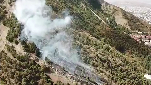 მთაწმინდაზე ხანძრის ჩაქრობის პროცესში ვერტმფრენი ჩაერთო