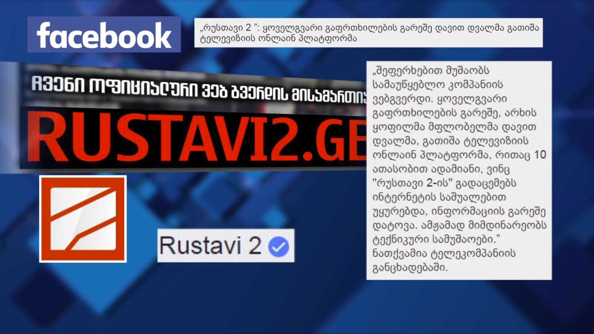 ვებ-გვერდის მისამართი არხის ყოფილი მფლობელის, დავით დვალის მიზეზით შეიცვალა. ,,რუსთავი 2” მისი მეგობრის სახელზე იყო რეგისტრირებული. ტელეკომპანია „რუსთავი 2-ის“...