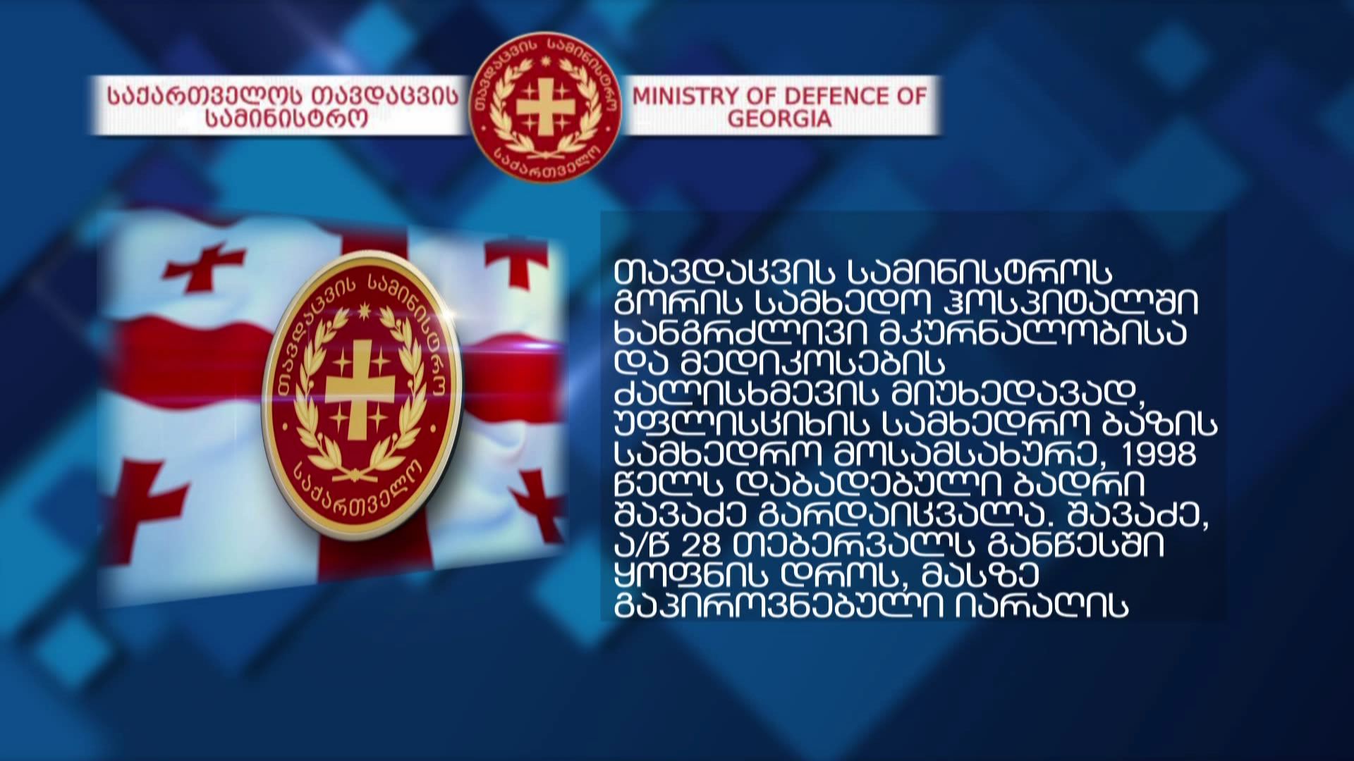 ჯარისკაცის გარდაცვალების ფაქტთან დაკავშირებით განცხადებას ავრცელებს საქართველოს თავდაცვის სამინისტრო. " თავდაცვის სამინისტრო, ღრმა მწუხარებას გამოთქვამს მომხდარის გამო და უთანაგრძნობს გარდაცვლილის...