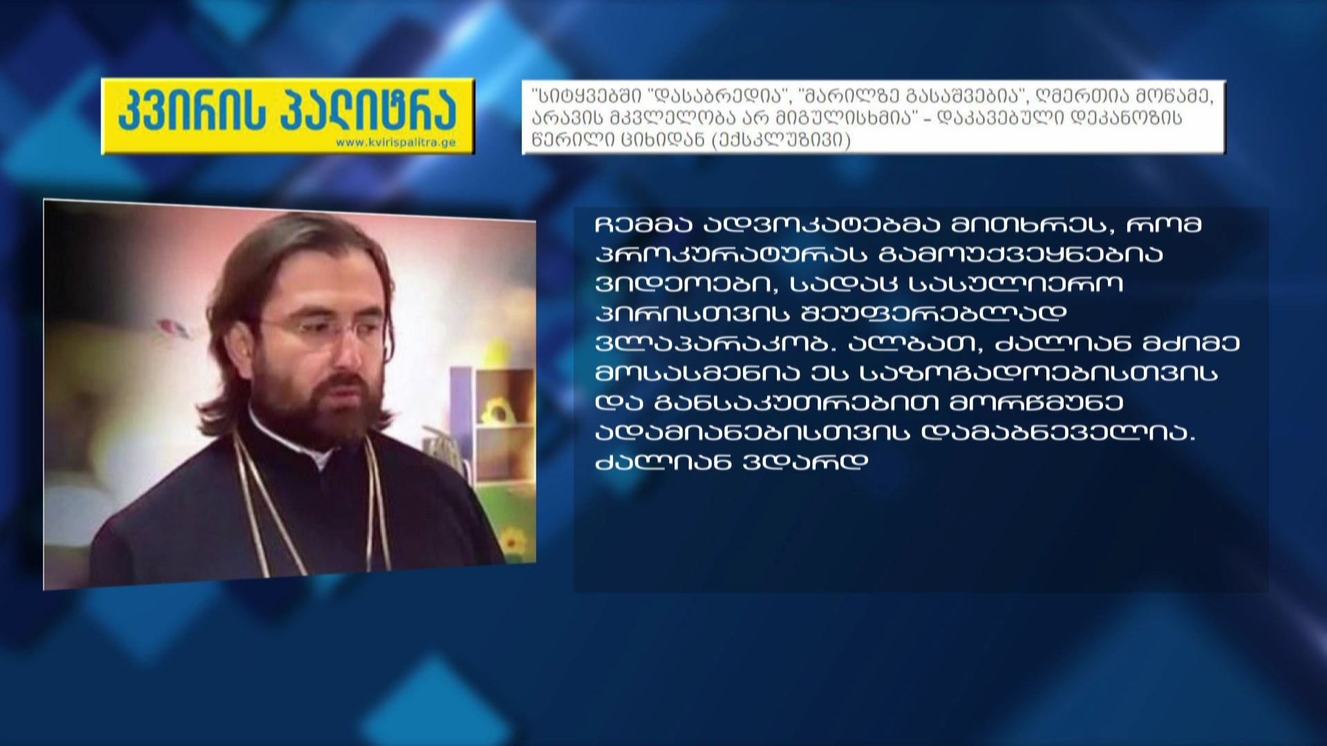 ფიგურირებენ თუ არა ე.წ-ლი ,,ციანიდის საქმეში” ბათუმისა და ლაზეთის მიტროპოლიტი დიმიტრი და პატრიარქის უსაფრთხოების სამსახურის ყოფილი უფროსი? დაკავებული დეკანოზის ადვოკატი...